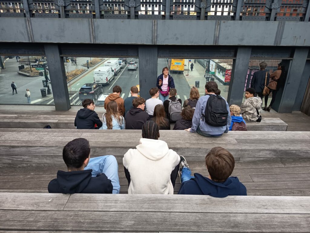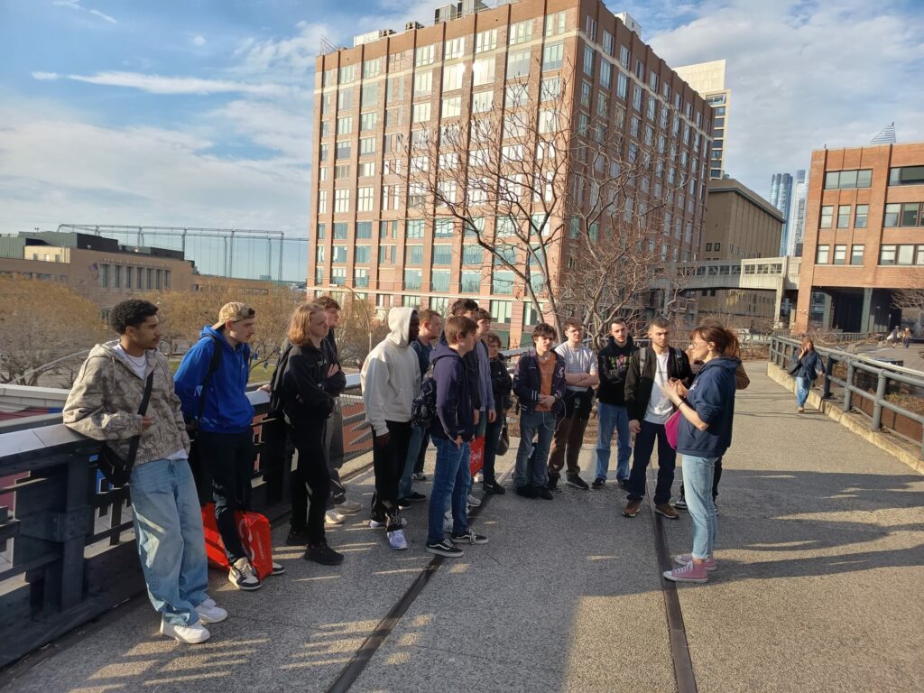 Des cours d’histoire et de civilisation anglaises ont été donnés dans les différents points d’intérêt touristiques et historiques (Little Italy, Chinatown, Rockefeller center, New York Library, quartier de Wall Street et de la Réserve fédérale, Ellis Island, la Grand central Station, etc.). Des activités culturelles très variées ont été pratiquées : des visites diurnes et nocturnes de l’Empire State Building, un match de NBA à Brooklyn, une promenade (et une séance de running !) à Central Park, une balade sur le pont de Brooklyn, une visite poignante du mémorial du 11 septembre, une visite guidée de Microsoft et une expérimentation des nouveaux produits dans les domaines de l’informatique et des jeux vidéo, une découverte du Muséum d’histoire naturelle, une exploration des œuvres de street art dans le quartier de Brooklyn, des visites de jour et de nuit de la 5ème avenue et de Times Square, une immersion parmi les œuvres d’art contemporain du musée Guggenheim, une déambulation commentée sur la high line, etc.